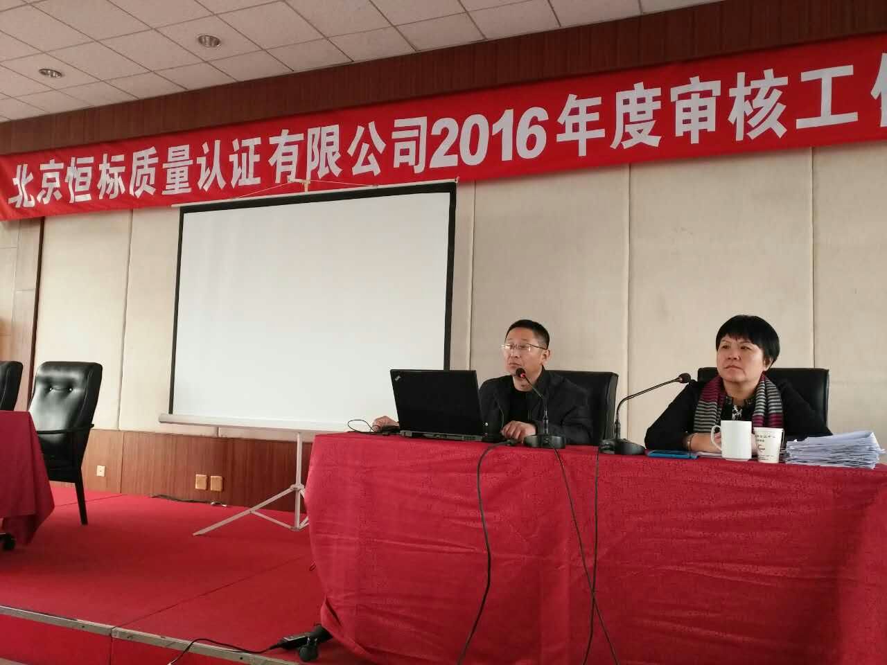 北京恒標(biāo)質(zhì)量認(rèn)證有限公司2016年度審核工作會(huì)議于21017年3月11日至12日在北京隆重召開。年會(huì)上,常務(wù)副總經(jīng)理王立杰對(duì)2016年恒標(biāo)認(rèn)證公司的工作進(jìn)行了總結(jié),對(duì)2017年的發(fā)展和機(jī)遇進(jìn)行了展望,同時(shí)鼓勵(lì)大家在新的一年里再接再厲,再創(chuàng)佳績(jī)!
